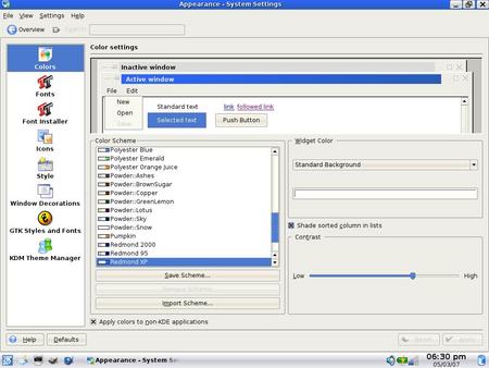 KDE's "Look and Feel" tool lets you tune colors, fonts, style, and more, to your heart's desire (Click to enlarge)
