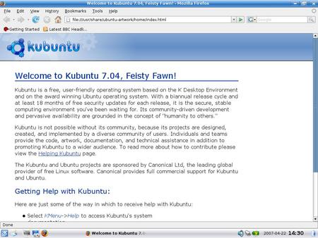 Installing Firefox with the Adept Installer function (Click to enlarge) After installing Firefox, run it (Kmenu > Internet > Firefox). If all went well, here is the result.