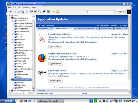 - Good selection of preinstalled apps, with additional ones (both free and commmercial/proprietary) readily available, via the Xandros Networks downloader/installer/updater tool