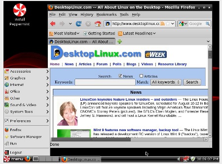 Peppermint OS 1.0 (Click to enlarge) While acting as a full-featured, 30,000-package standalone Linux OS for desktop PCs, Peppermint 1.0 can also be downloaded for netbooks in a configuration with considerably fewer packages. Those wanting to move to a more cloud-oriented approach, meanwhile, can use a version that's even more scaled down.