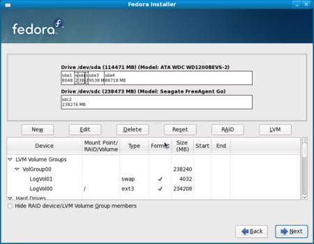 It may be ugly, but the disk partitioner in Fedora 10's installer offers some powerful options (Click to enlarge)