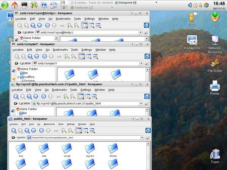 With SLED 10 SP1, you don't have to care where the file is you're working on. It doesn't matter Whether the file is on a local drive, on an ftp drive, on a Samba share, or in a Windows 2003 Active Directory folder. It all works the same. (Click to enlarge)
