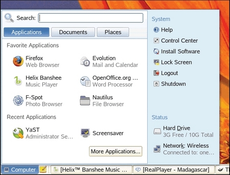 This edition of SLED comes with such well known programs as Firefox 2.0, Adobe Flash 9, and Evolution 2.6. It also includes lesser-known -- but still valuable -- programs such as the Beagle desktop Indexer and search engine; the Helix Banshee 0.12.0 audio player and library application, which includes iPod support; F-Spot 0.3.5, a feature-rich photo management application; and Ekiga 2.0.5, an open-source VoIP and video application.