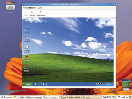 Can't live without a certain Windows application? With SLED's Xen-based virtualization, you don't have to. (Click to enlarge)
