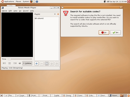 Ubuntu tried, but failed, to play a DVD (Click to enlarge)